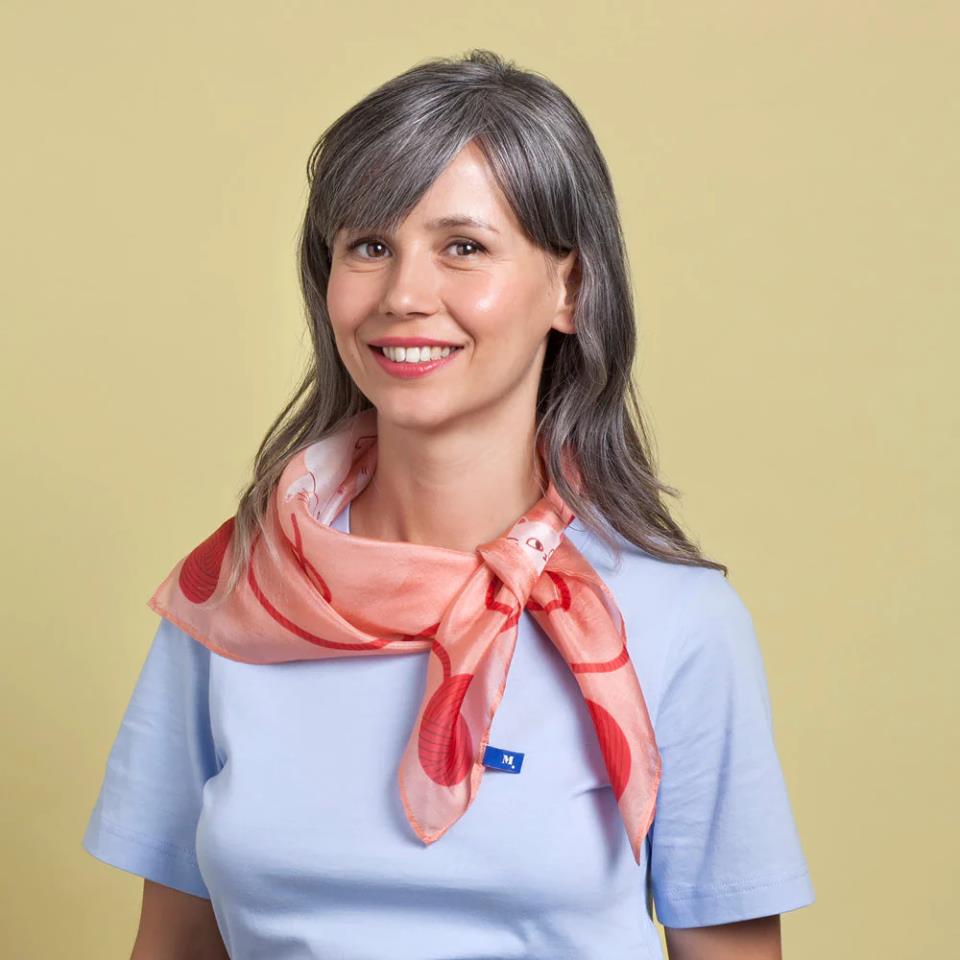 La bufanda mide 65 x 65 cm.