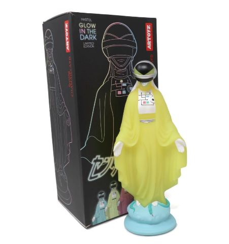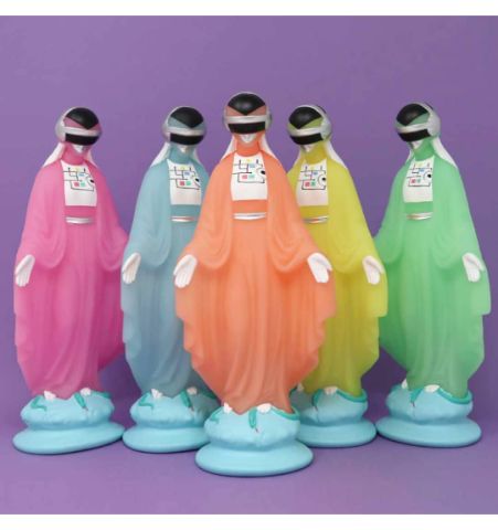 Estamos súper orgullosos de presentar el proyecto Sentai Maria; ha sido un largo camino junto a la artista Soasig Chamaillard para dar a luz a esta serie de 5 figuras. Chamaillard basa su trabajo en la fusión del ícono de la Santa María con íconos Pop y algunas imágenes de culto del mundo moderno. Con lo cual aquí tenemos a la Sentai Maria, una virgo de 25 cm de alto como homenaje a la cultura Sentai de Japón. Cada color es una edición limitada de 200 piezas a nivel mundial.
